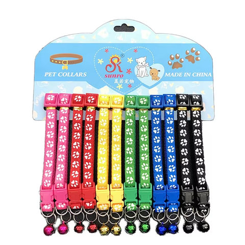 Gato Bell Collar 1.0cm 12 pcs/set Personalizado Cat Footprint Padrão Pet Cat Collar Breakaway Buckle com Sinos